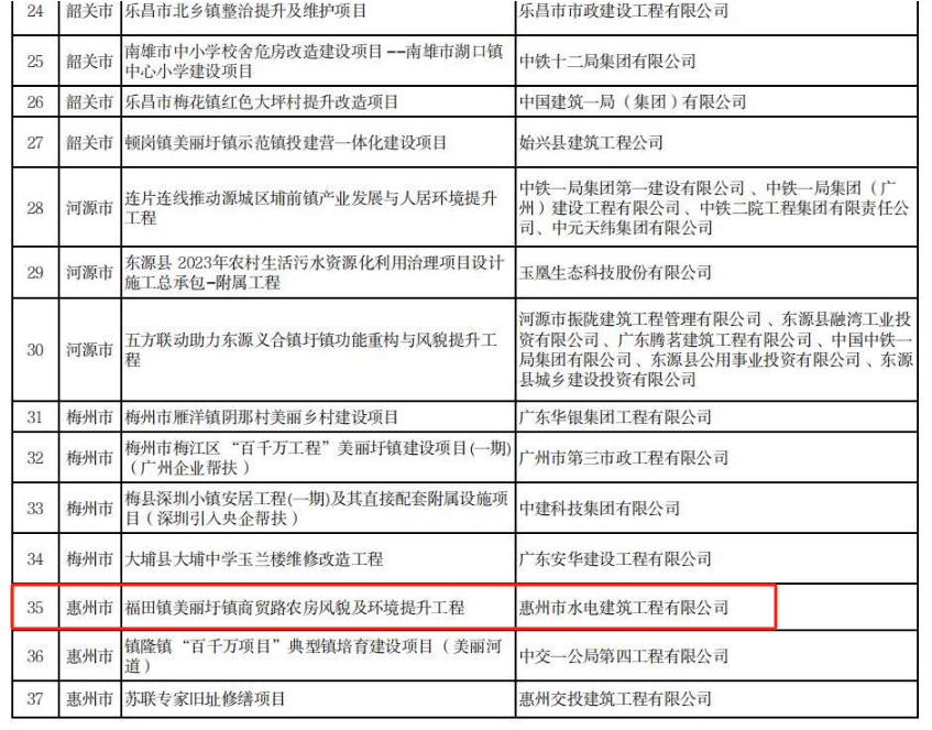 近日,廣東省住房和城鄉(xiāng)建設(shè)廳公布65個項目入選廣東省2024年建筑業(yè)企業(yè)投身“百千萬工程”項目范例,其中,我司承建的惠州市博羅縣福田鎮(zhèn)美麗圩鎮(zhèn)商貿(mào)路農(nóng)房風(fēng)貌及環(huán)境提升工程成功入選。......