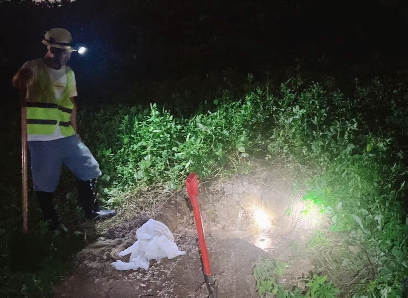 高效協(xié)同,凝聚搶險合力。公司調(diào)度60多名搶險隊員和技術(shù)人員,皮卡車、指揮車輛及后勤保障車共9輛抵達(dá)現(xiàn)場并開展安全技術(shù)交底,立即做好工作分工與應(yīng)急處置措施。在現(xiàn)場,因連日暴雨河水高漲,背水坡面因滲流作用出現(xiàn)多處涌水現(xiàn)象,如不及時處置,將引發(fā)滲透破壞,堤壩有坍塌風(fēng)險。20點54分,搶險戰(zhàn)役正式打響,整個搶險過程持續(xù)2小時,到晚上11點成功處置管涌點12處,圓滿完成全部搶險任務(wù)。