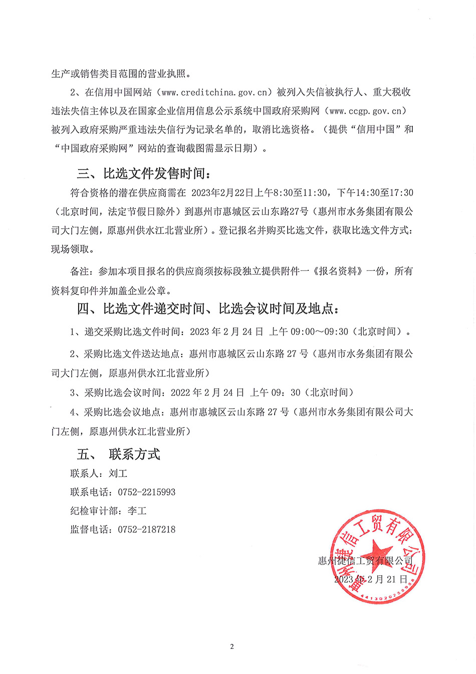 捷信工貿公司2023年度臨建設施采購項目(第二次)采購公告