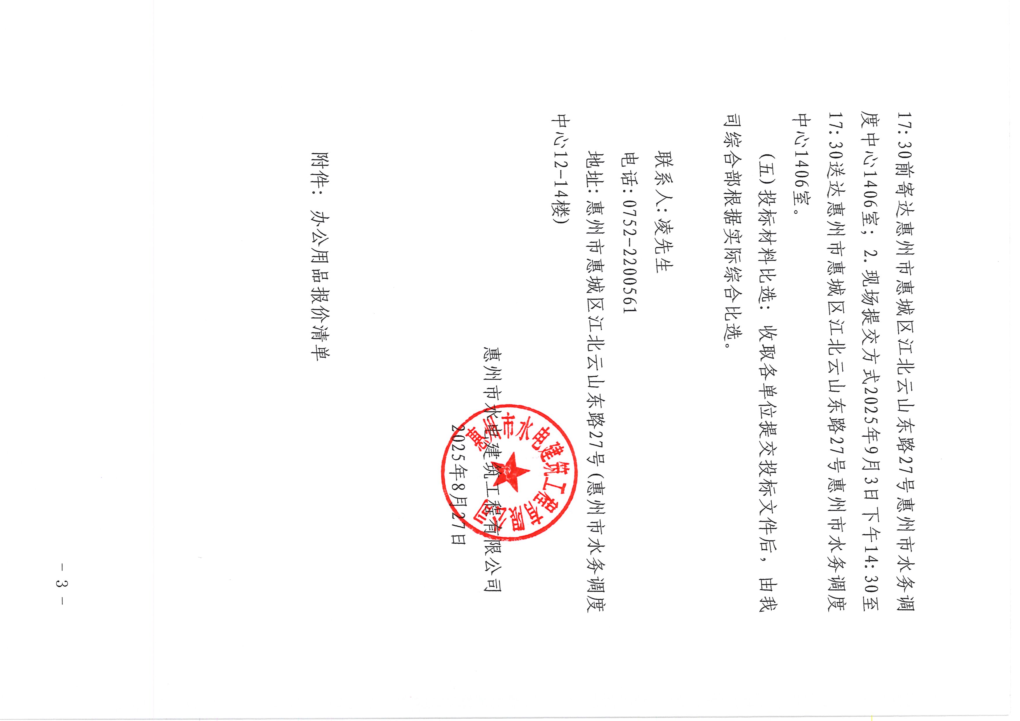惠州市水電建筑工程有限公司辦公用品供應(yīng)商選取項目采購公告附件: