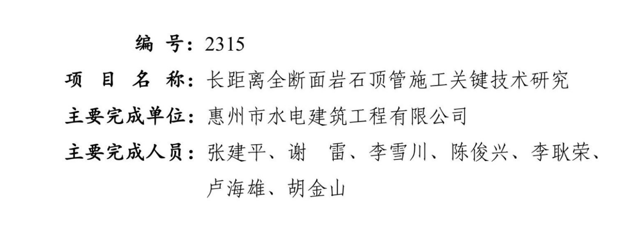 9月14日,廣東省水利學(xué)會水利科學(xué)技術(shù)獎(jiǎng)勵(lì)委員會公布了《關(guān)于授予第十五屆廣東省水利學(xué)會水利科學(xué)技術(shù)獎(jiǎng)的決定》,由市水電公司獨(dú)立完成的《長距離全斷面巖石頂管施工關(guān)鍵技術(shù)研究》獲得三等獎(jiǎng)。