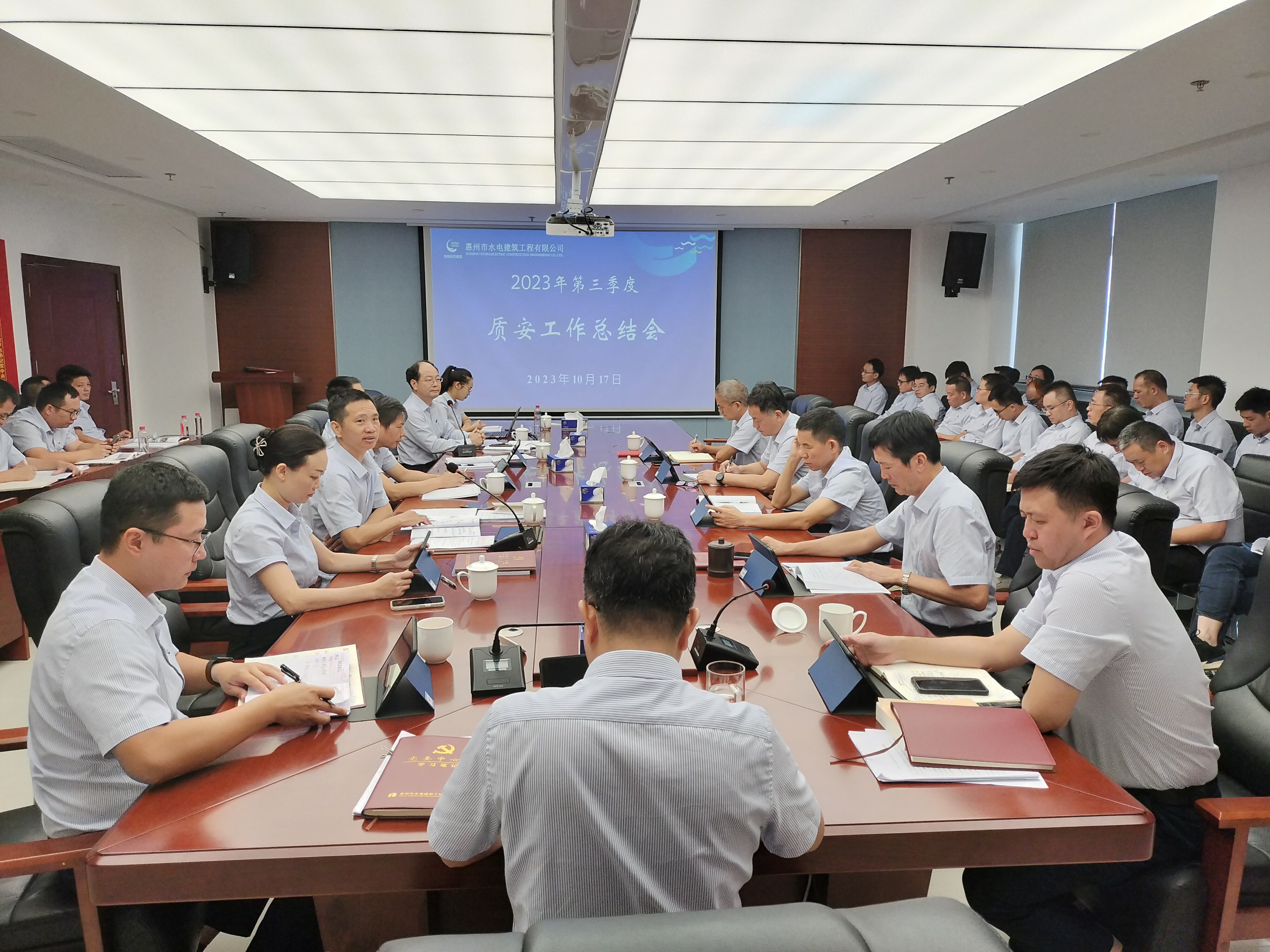 10月17日上午,市水電公司在1419會(huì)議室召開(kāi)工作總結(jié)會(huì)議,主要內(nèi)容包含第三季度質(zhì)量安全工作總結(jié)、第四屆施工專項(xiàng)方案編制大賽頒獎(jiǎng)儀式以及對(duì)2023年度安全生產(chǎn)和消防工作考核進(jìn)行動(dòng)員部署。公司領(lǐng)導(dǎo)班子、安委會(huì)全體成員,各職能部門、分隊(duì)、所屬企業(yè)負(fù)責(zé)人及質(zhì)安小組骨干參加會(huì)議。會(huì)議由分管安全生產(chǎn)副總經(jīng)理陳占瑞主持。