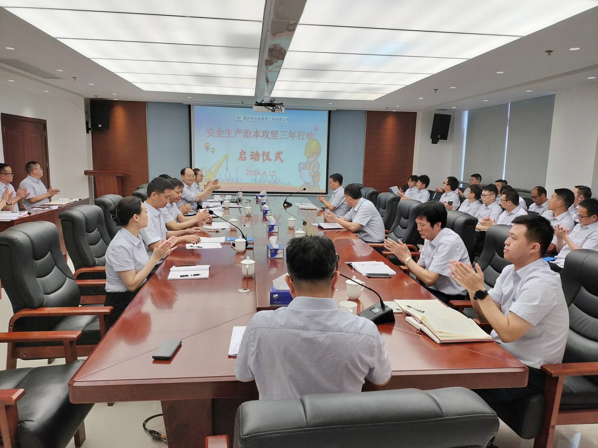 今年是國家安全生產(chǎn)治本攻堅三年行動的啟動之年,公司結(jié)合實際,及時印發(fā)了《安全生產(chǎn)治本攻堅三年行動實施方案(2024-2026年)》。會上,公司安委會主任、黨委書記、董事長鄭海強宣布“惠州市水電建筑工程有限公司安全生產(chǎn)治本攻堅三年行動”正式啟動。