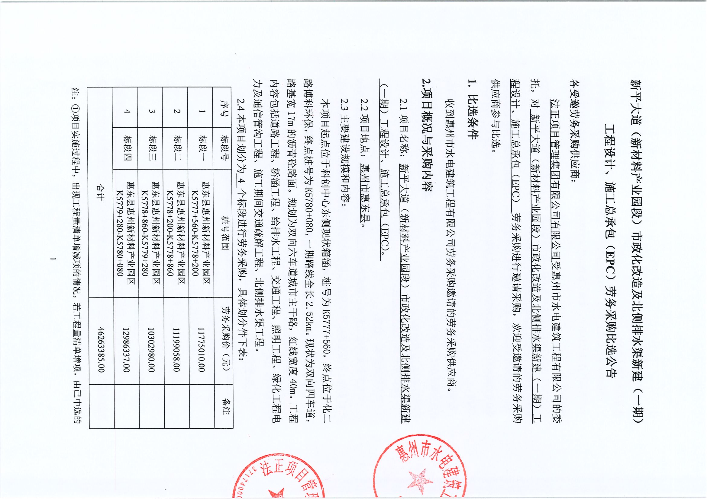 惠州新材料產(chǎn)業(yè)園起步區(qū)地塊土石方場平工程(四區(qū))項目一期施工圖設(shè)計、施工總承包(EPC)勞務(wù)采購中選候選人公示