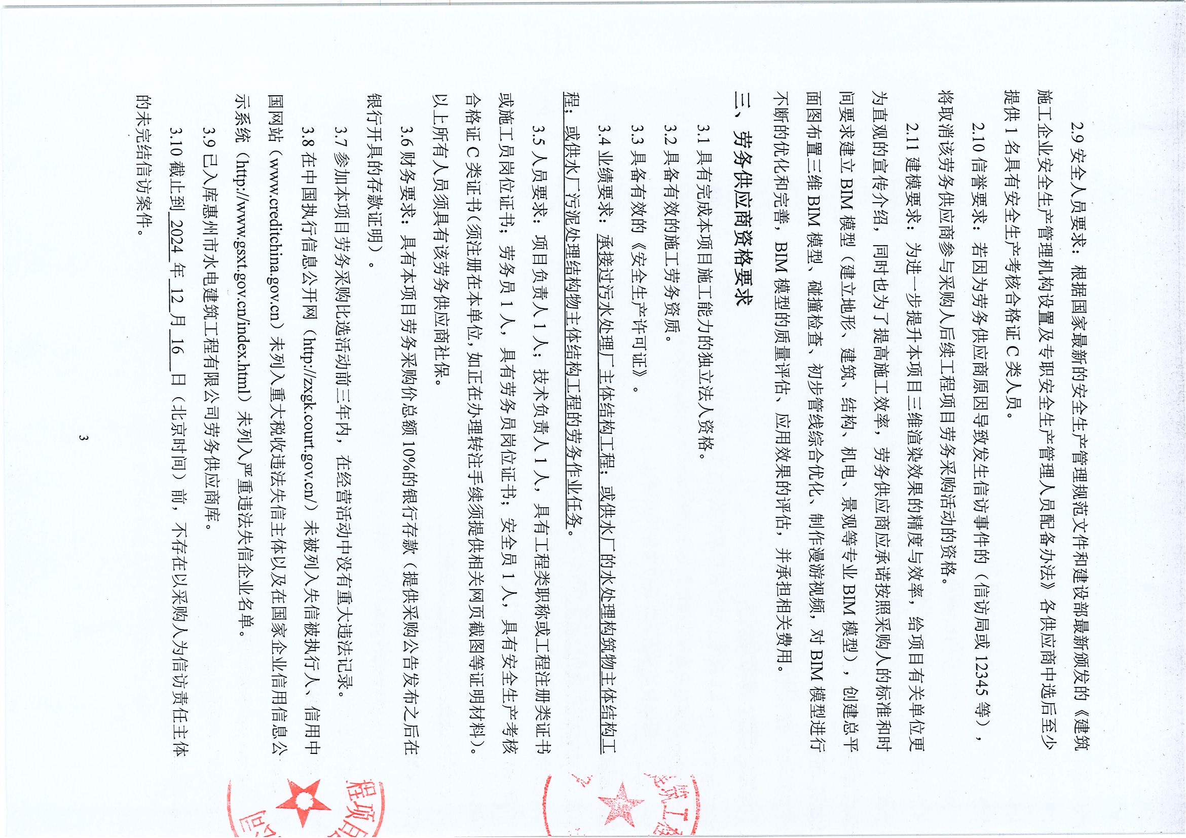 惠州市江北污水處理廠二期工程項(xiàng)目施工勞務(wù)采購比選公告附件: