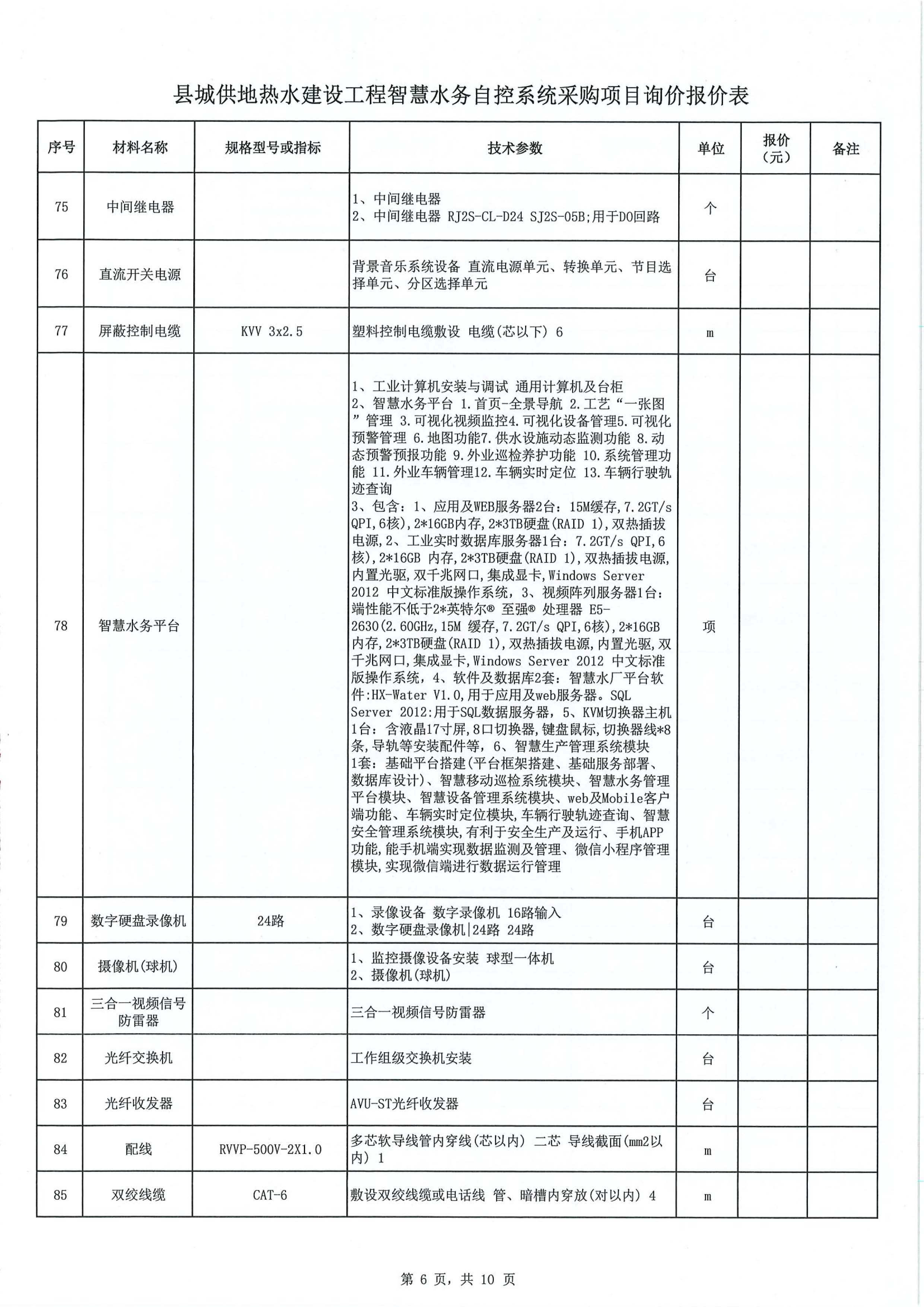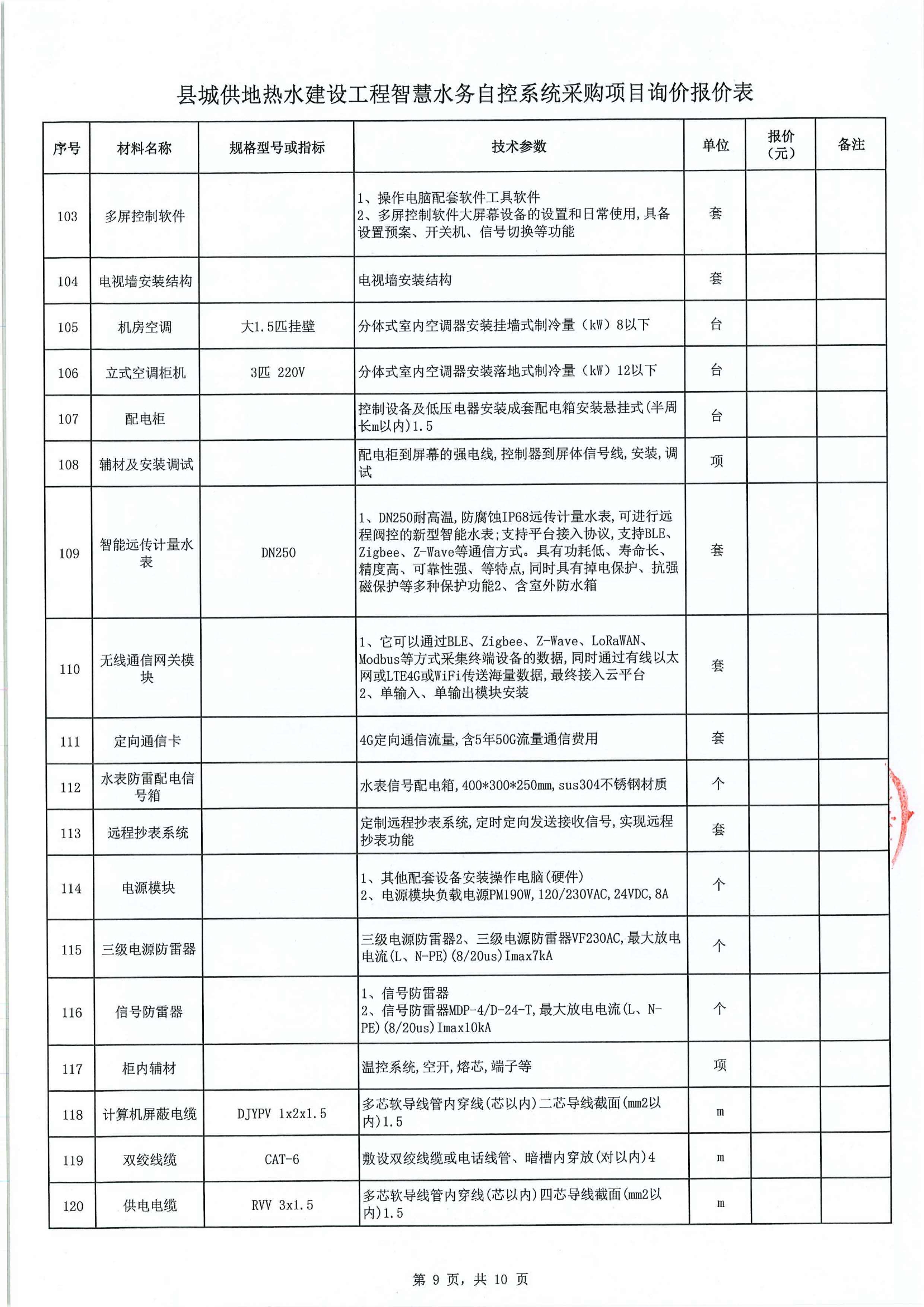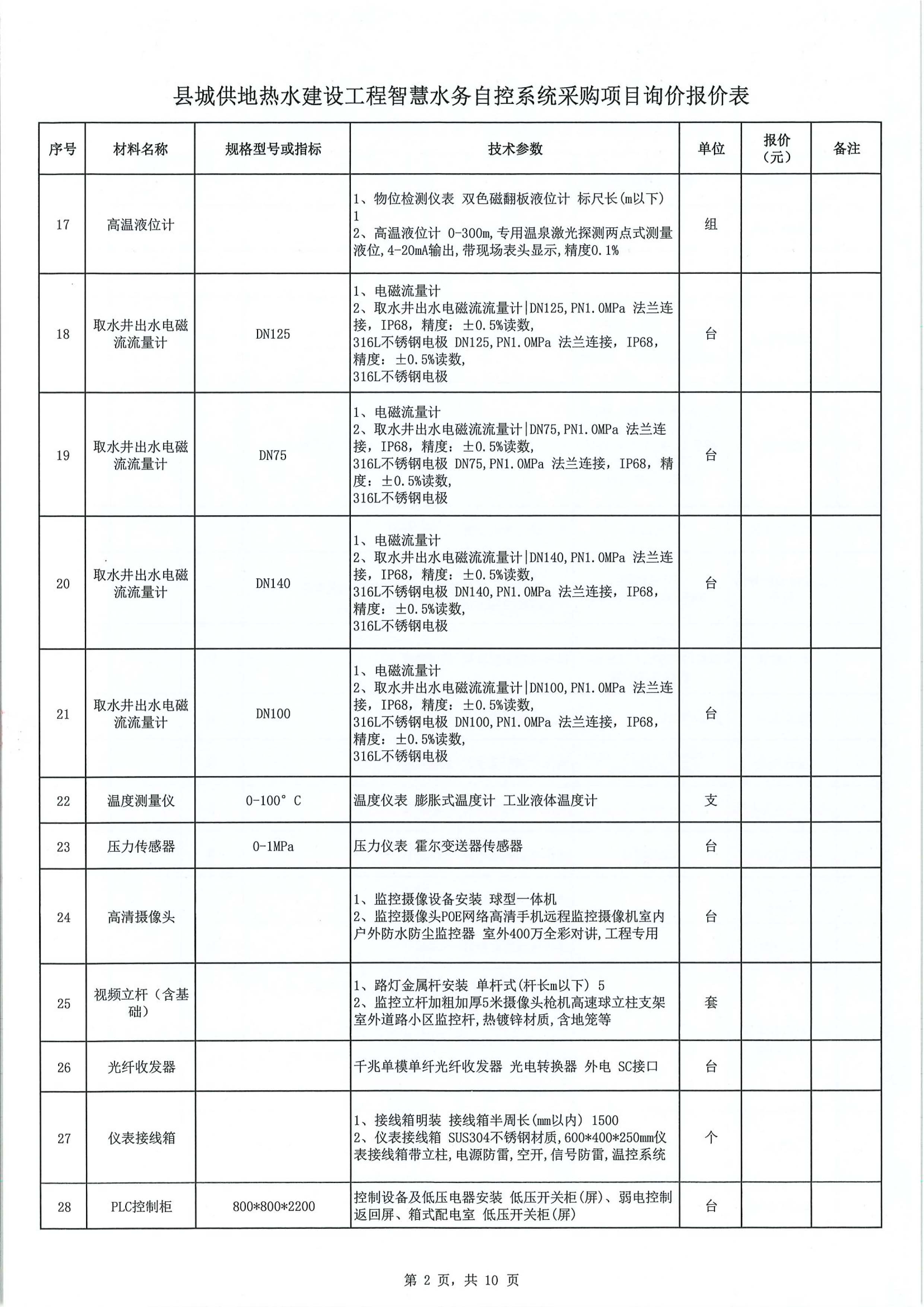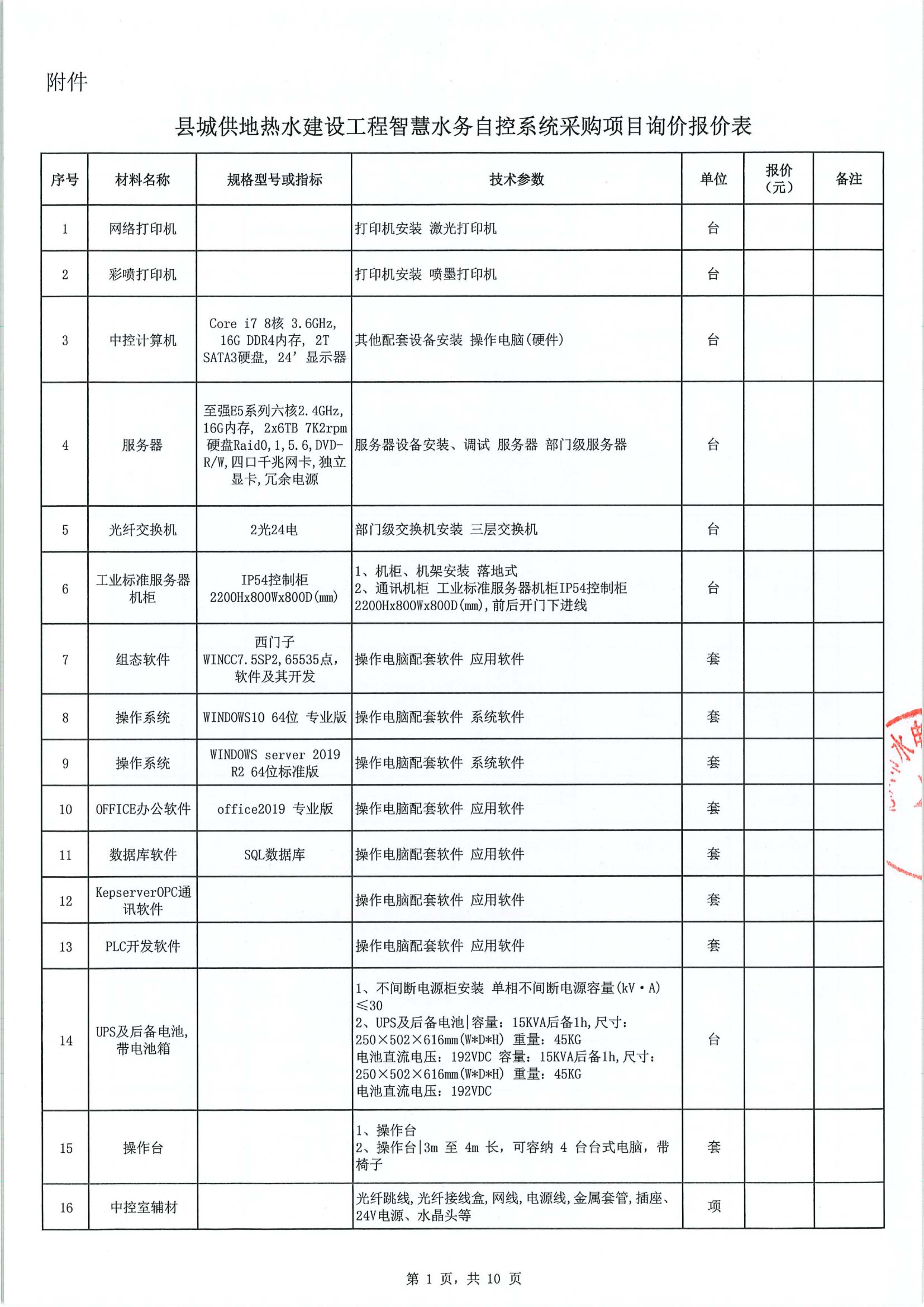 縣城供地熱水建設工程智慧水務自控系統(tǒng)采購項目詢價公告附件: