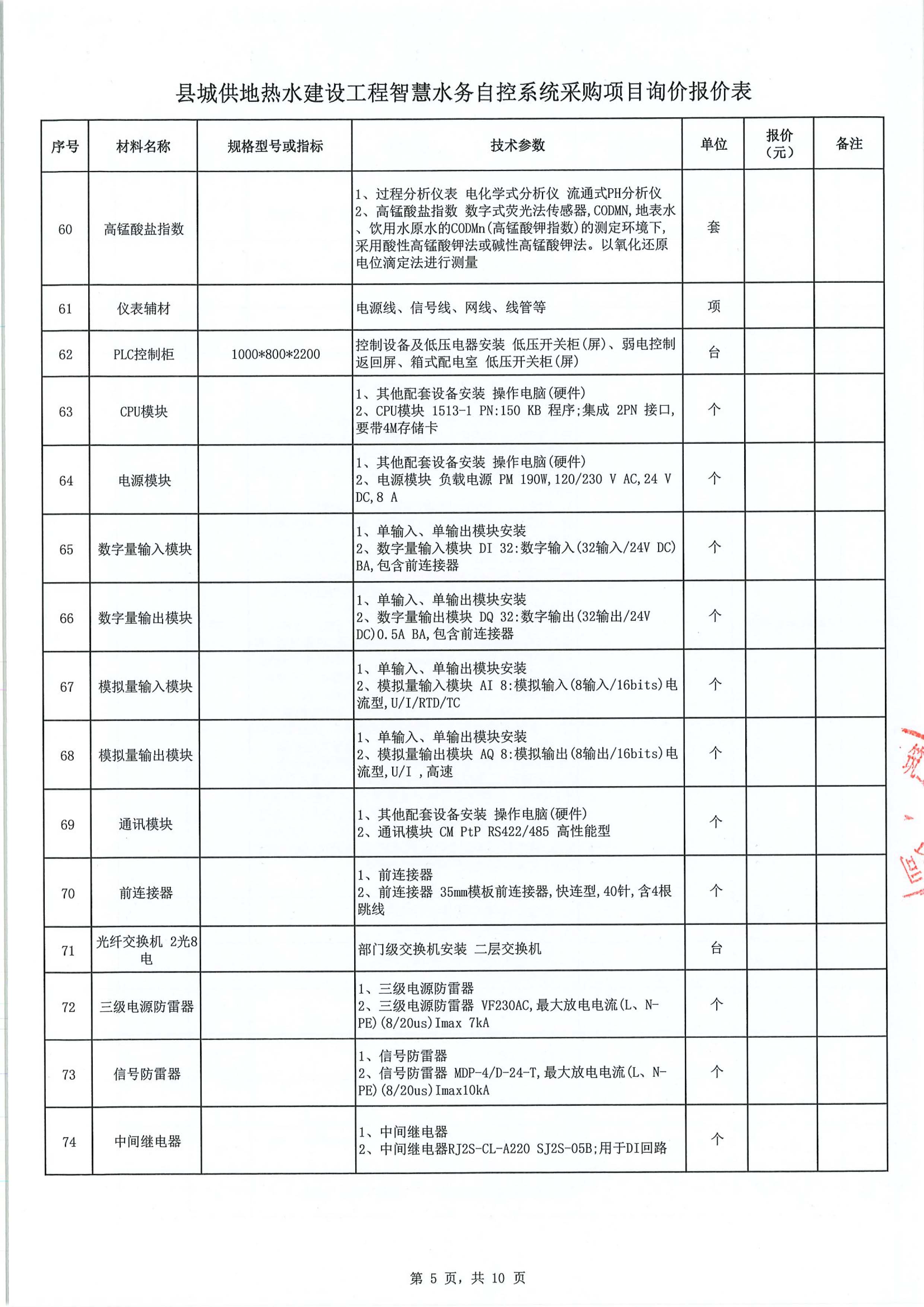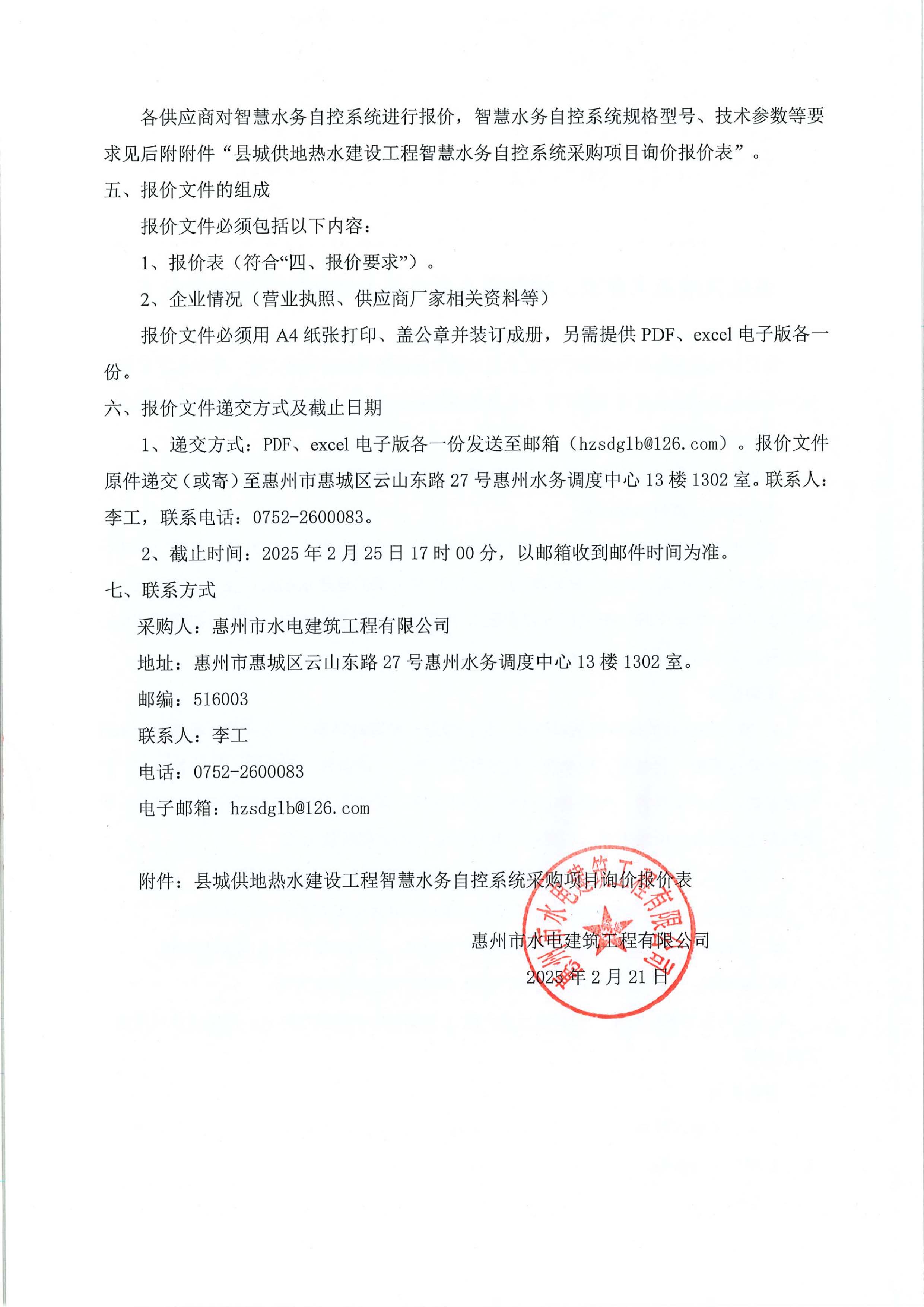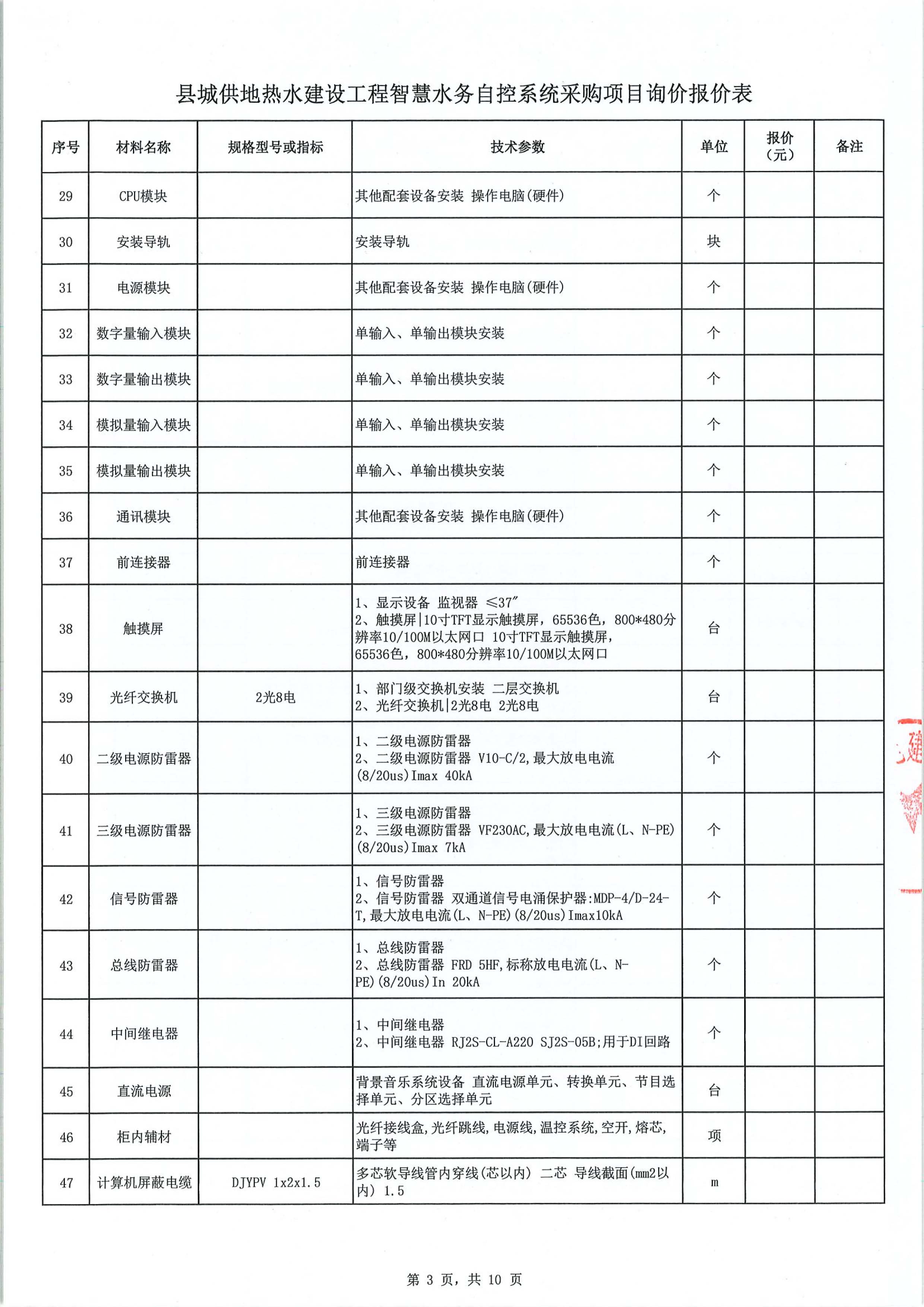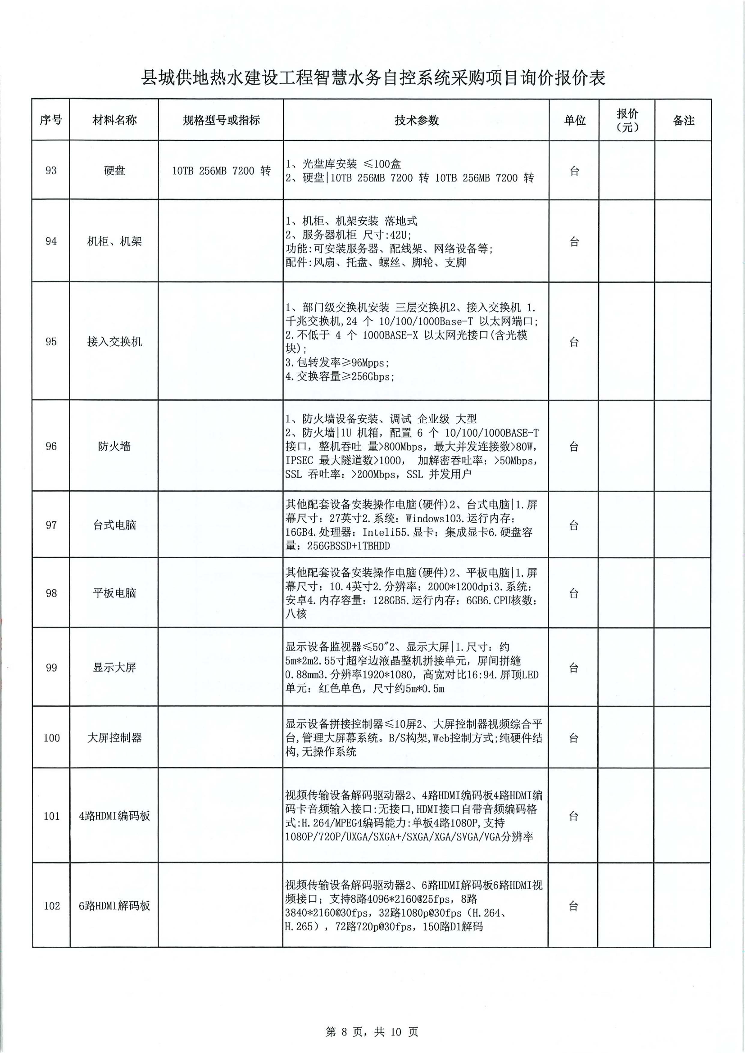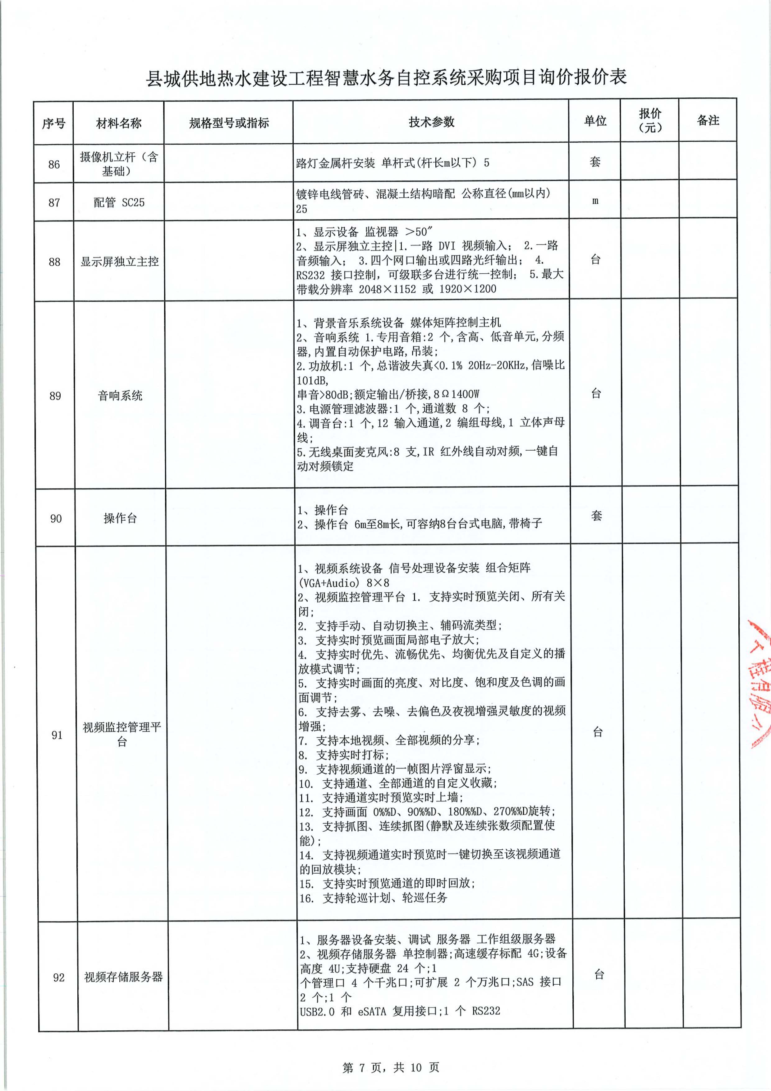 縣城供地熱水建設工程智慧水務自控系統(tǒng)采購項目詢價公告附件: