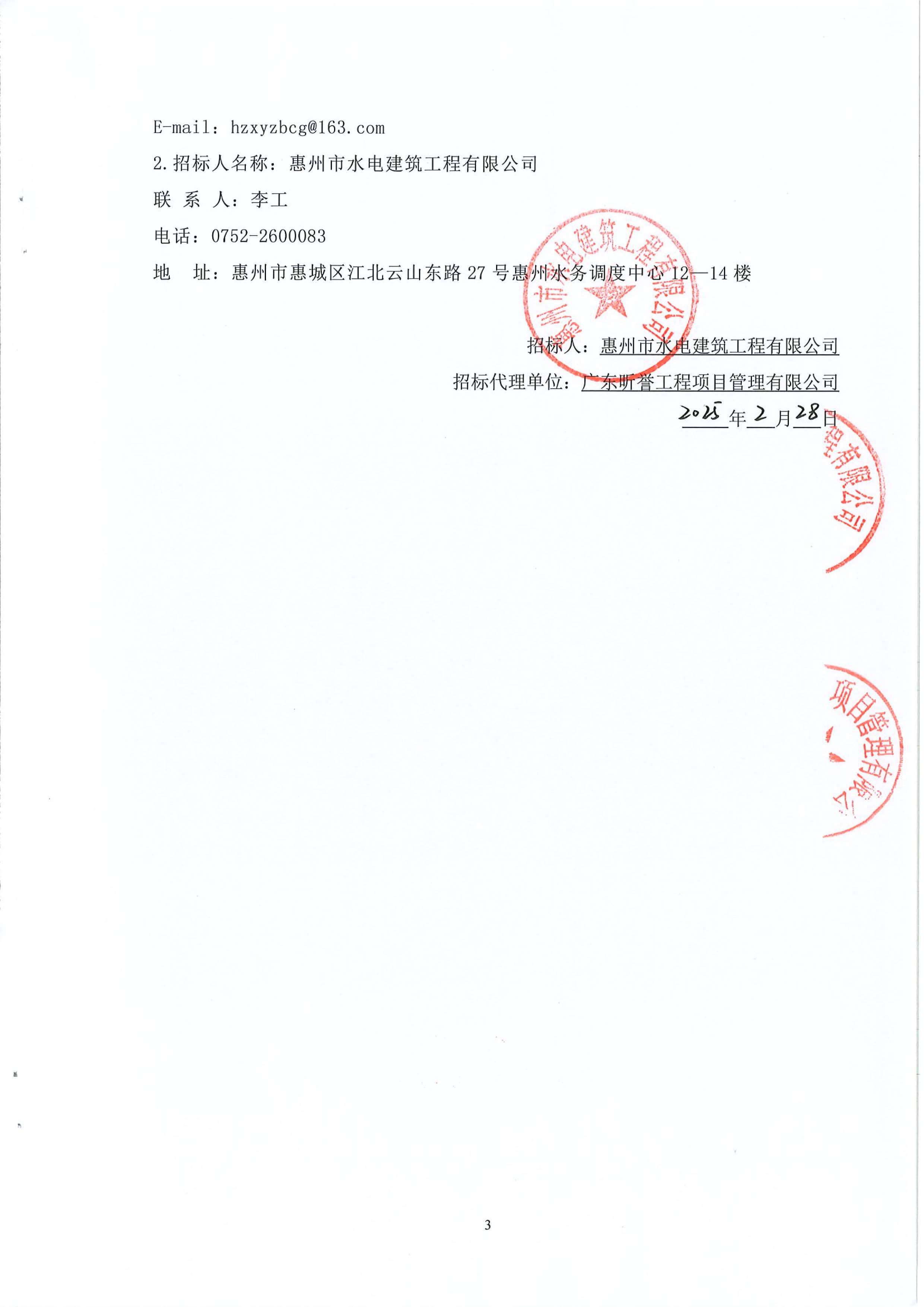惠東縣新平大道供水管道擴容改造工程項目(一期)勘察設計采購施工總承包(EPC)勞務采購中選候選人公示
