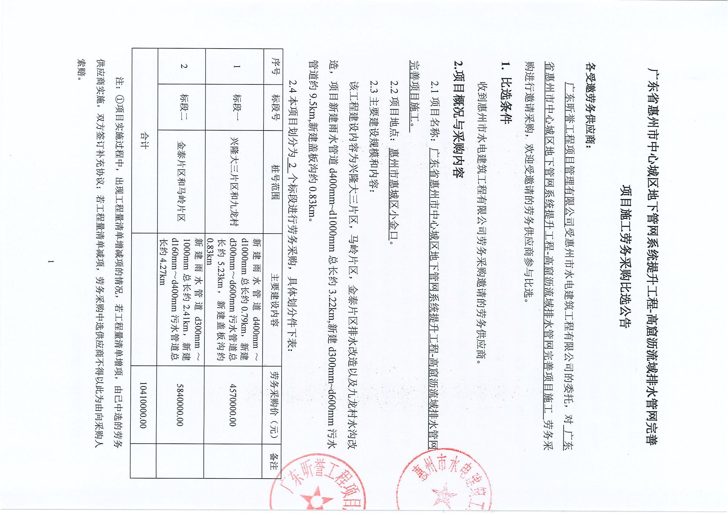 廣東省惠州市中心城區(qū)地下管網(wǎng)系統(tǒng)提升工程-高窟瀝流域排水管網(wǎng)完善項(xiàng)目施工勞務(wù)采購(gòu)比選公告