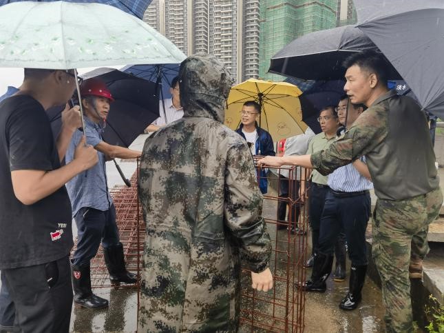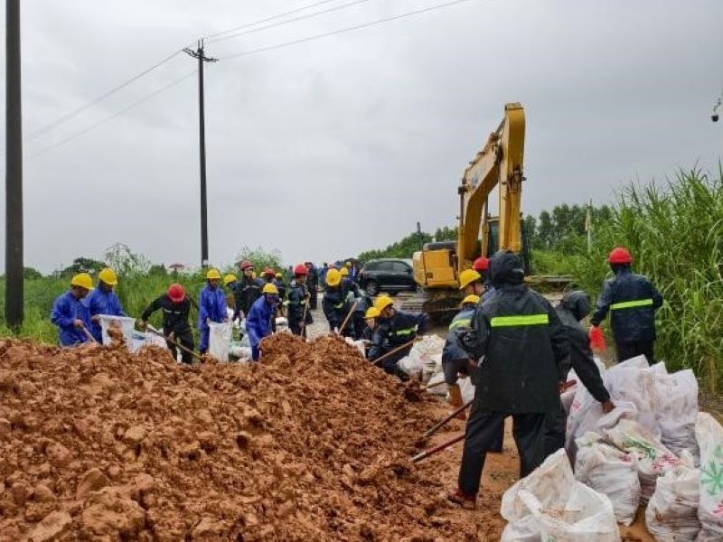 在惠陽區(qū)淡水河堤,經(jīng)過多輪強(qiáng)降水,惠陽區(qū)淡水河水位快速上漲并持續(xù)超警戒水位,部分堤段出現(xiàn)漫堤險(xiǎn)情。8月5日11時(shí),公司接到前往現(xiàn)場執(zhí)行搶險(xiǎn)物資運(yùn)輸任務(wù),隨即調(diào)度5輛運(yùn)輸車、1臺隨車吊機(jī)、1臺叉車、50名工人及20名技術(shù)管理人員趕往運(yùn)輸點(diǎn),公司副總經(jīng)理、教授級高級工程師張建平帶隊(duì)來到現(xiàn)場,共同研討搶險(xiǎn)方案,為搶險(xiǎn)工作提供技術(shù)指導(dǎo)。從接到指令到第一、第二輛運(yùn)輸車出發(fā),僅用時(shí)1個多小時(shí),至14時(shí)41分,全部機(jī)械設(shè)備準(zhǔn)備完畢前往搶險(xiǎn)現(xiàn)場。面對時(shí)間緊、任務(wù)重的挑戰(zhàn),搶險(xiǎn)隊(duì)員頂風(fēng)冒雨,連續(xù)作戰(zhàn),18時(shí)57分,淡水河段下游搶險(xiǎn)點(diǎn)已完成合攏,險(xiǎn)情得到有效控制,為后續(xù)防汛工作贏得了寶貴時(shí)間。