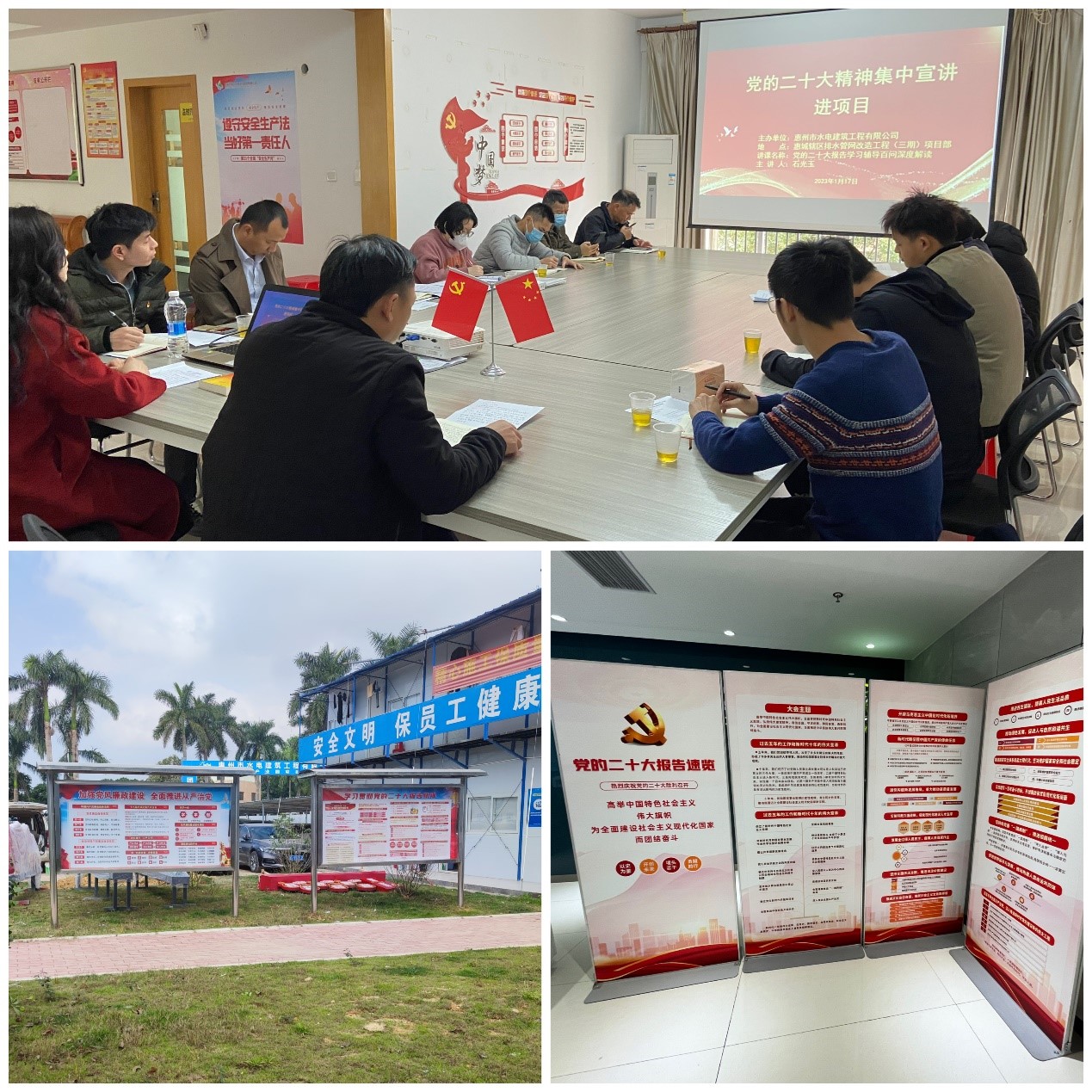 黨委領(lǐng)頭帶學(xué),各級跟進深學(xué)。十月,公司黨委組織收聽收看黨的二十大開幕會,并召開黨委理論學(xué)習(xí)中心組(擴大)會議,專題學(xué)習(xí)研討黨的二十大報告精神。十一月,及時召開傳達學(xué)習(xí)貫徹黨的二十大精神大會,印發(fā)學(xué)習(xí)宣傳貫徹工作方案,結(jié)合公司實際迅速部署相關(guān)工作。所屬各黨支部以高度的政治自覺、思想自覺和行動自覺,廣泛動員、有序推進學(xué)習(xí)傳達工作,采取集體研學(xué)、專題輔學(xué)、個人自學(xué)等方式,深入開展理論解讀闡釋、交流研討,持續(xù)深入推進黨的二十大精神學(xué)習(xí)入腦入心。同時,公司在惠州新材料產(chǎn)業(yè)園污水處理廠項目上建立了臨時黨支部,把學(xué)習(xí)陣地建在工地一線,推動黨的二十大精神真正進基層。
