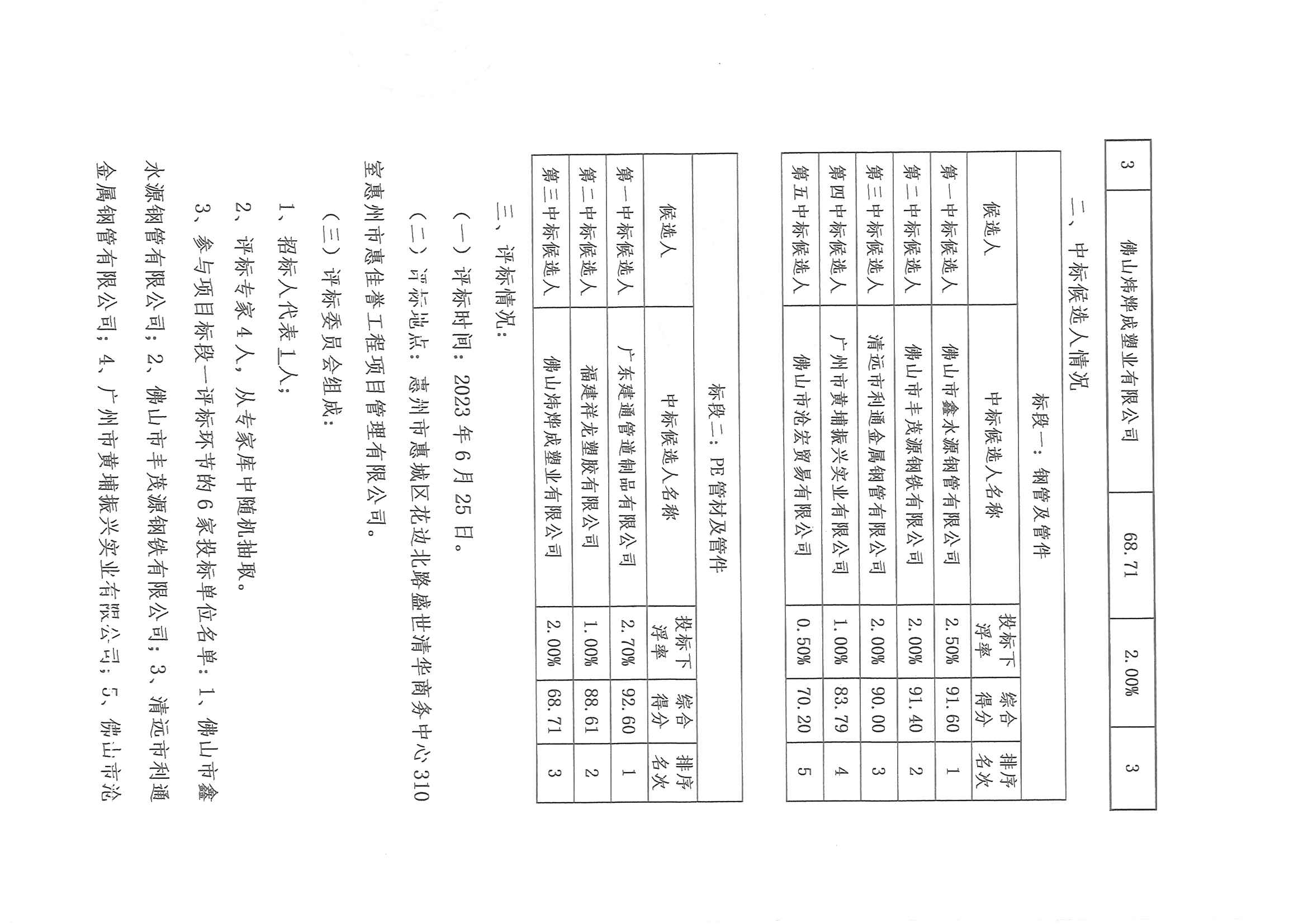 捷信工貿(mào)公司2023年度第二批管材及管件、閥門采購項目評標(biāo)結(jié)果公示