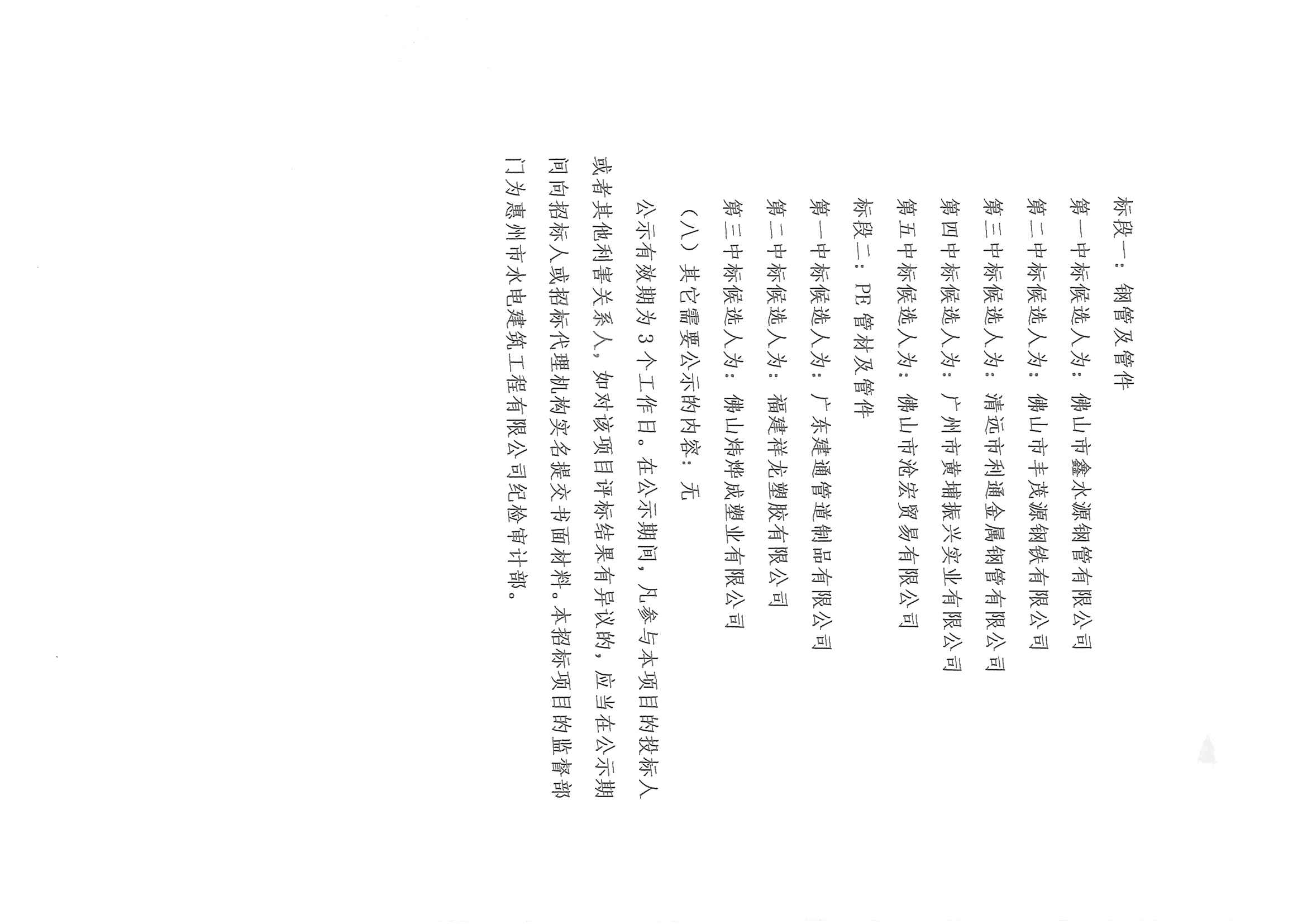 捷信工貿(mào)公司2023年度第二批管材及管件、閥門采購項目中標(biāo)結(jié)果公告
