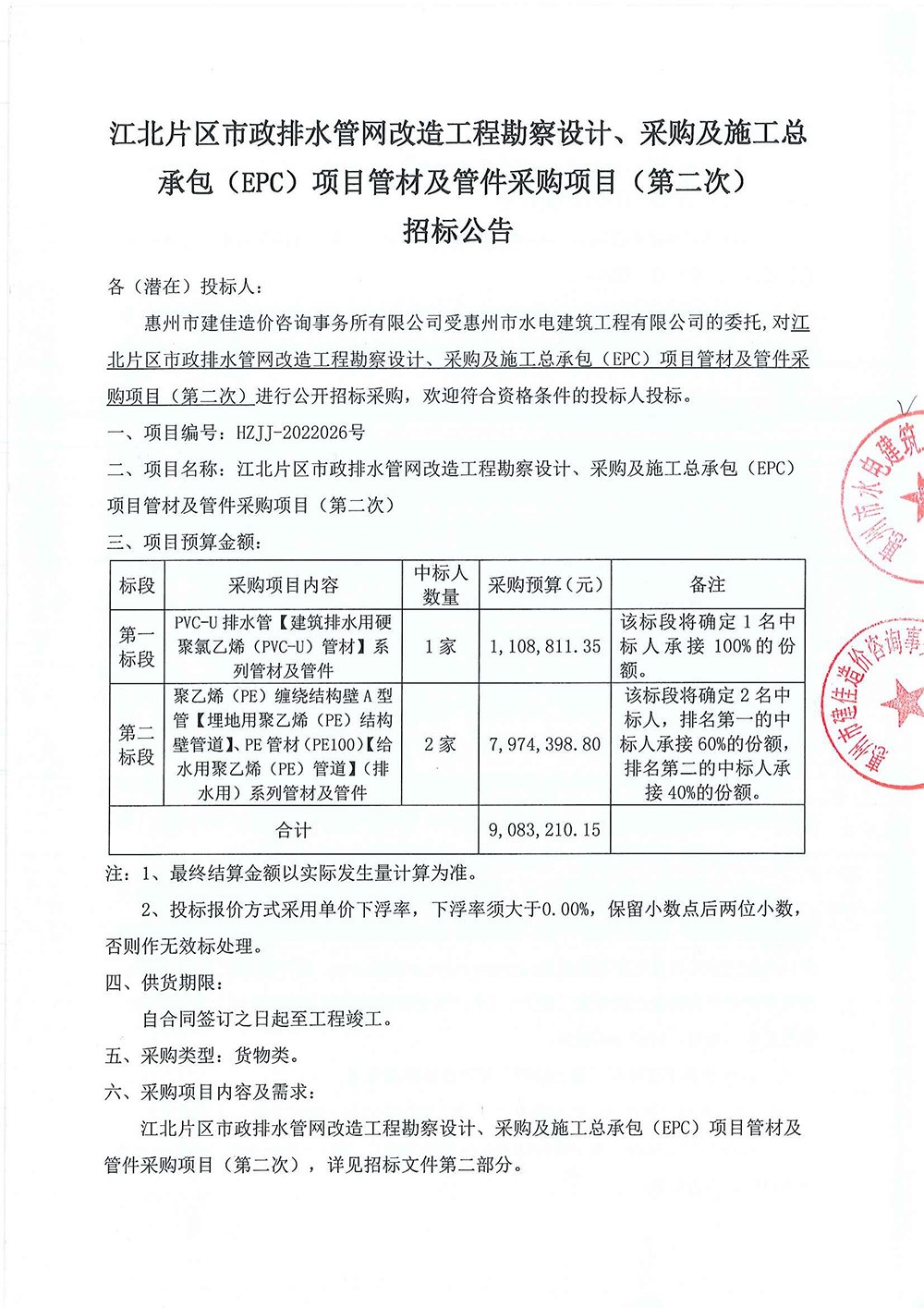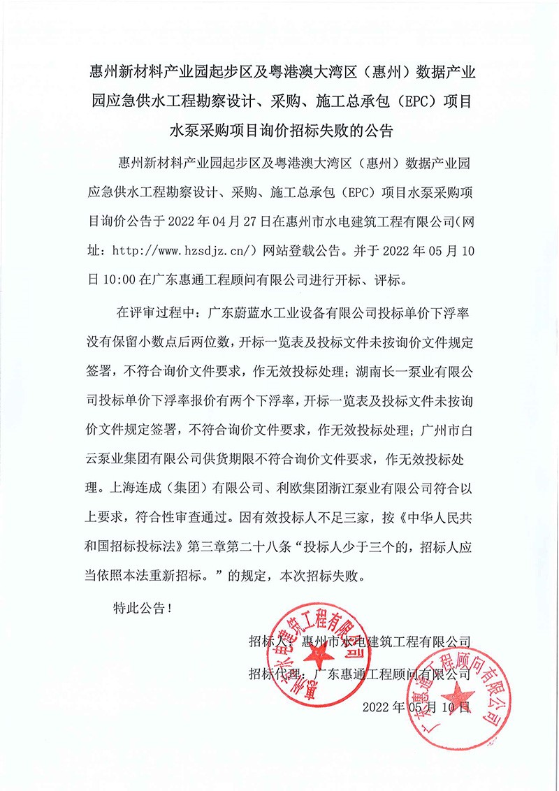 附件1:惠州新材料產(chǎn)業(yè)園起步區(qū)及粵港澳大灣區(qū)(惠州)數(shù)據(jù)產(chǎn)業(yè)園應急供水工程勘察設計、采購、施工總承包(EPC)項目水泵采購項目(第二次招標)詢價文件附件2:領取詢價文件登記表......
