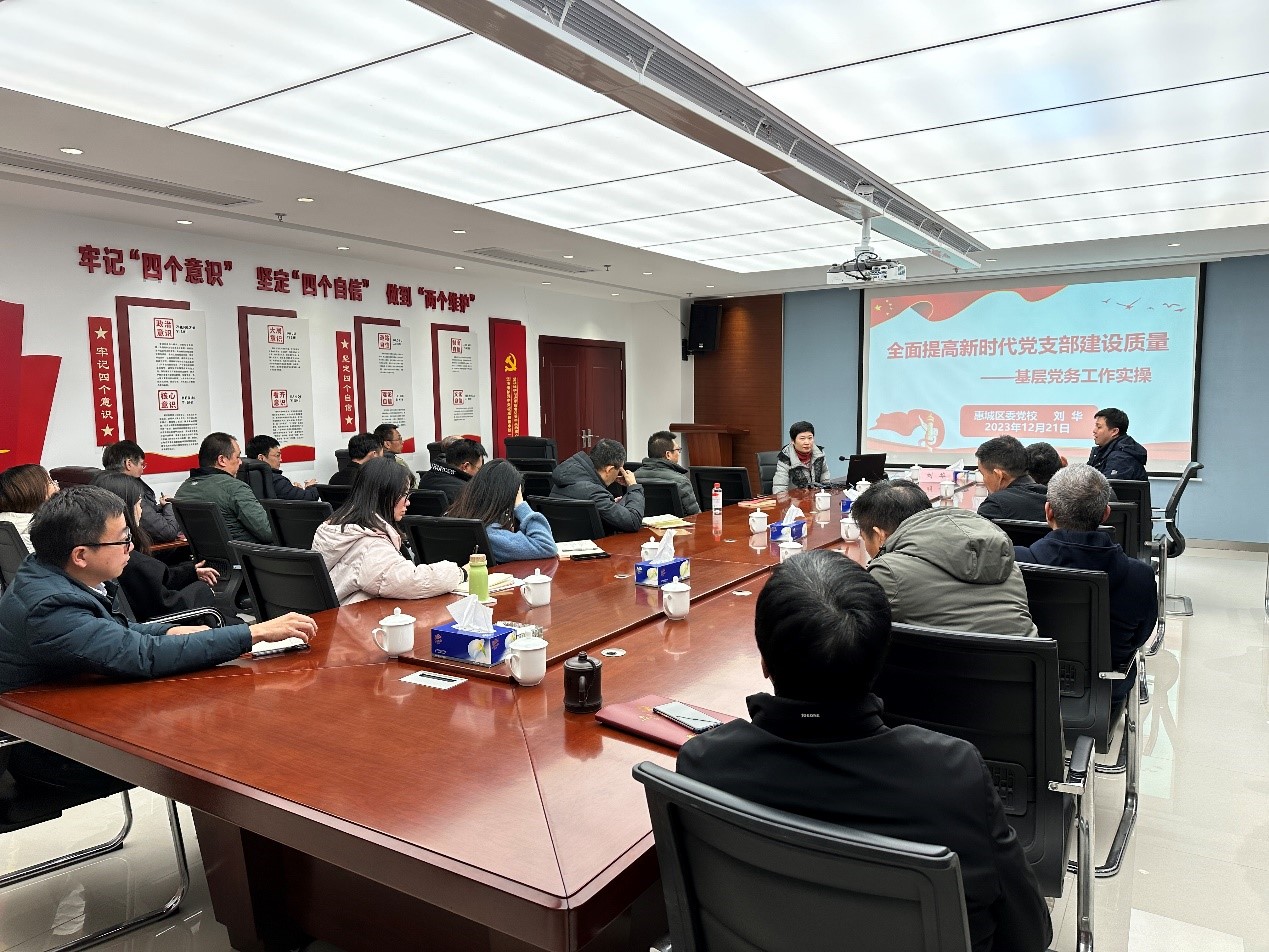 本次培訓(xùn)還邀請了惠州市委宣講團成員、惠州工程職業(yè)學(xué)院馬克思主義學(xué)院院長理陽陽和惠城區(qū)委黨校副校長劉華作專題講座,組織學(xué)員赴中化學(xué)南方運營管理有限公司惠州新材料產(chǎn)業(yè)園工程項目經(jīng)理部黨支部參觀學(xué)習(xí),并圍繞如何做好新時代基層黨建工作開展交流研討。